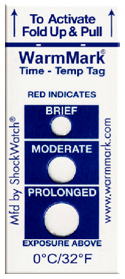 The WarmMark are ascending time-temperature indicator alerts users of exposure to unacceptably high temperature conditions